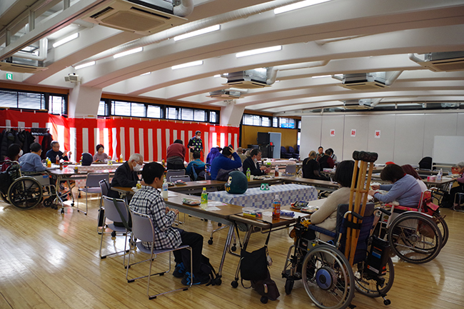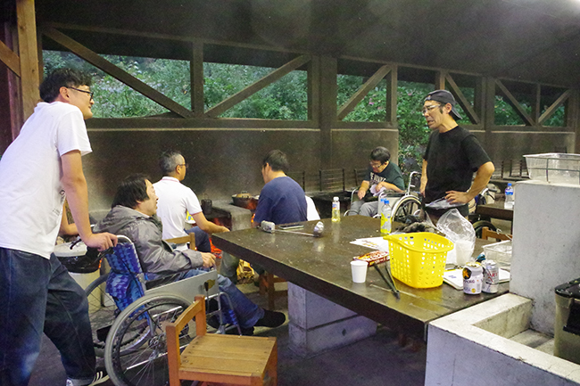 | 概 要 | 世田谷区障害者団体バス派遣事業(リフト付き大型観光バス)を利用し、世田谷区民健康村なかのビレジ(群馬県川場村)に1泊2日の宿泊体験を実施。自炊体験(カレーライス等)などを実施。 | ||